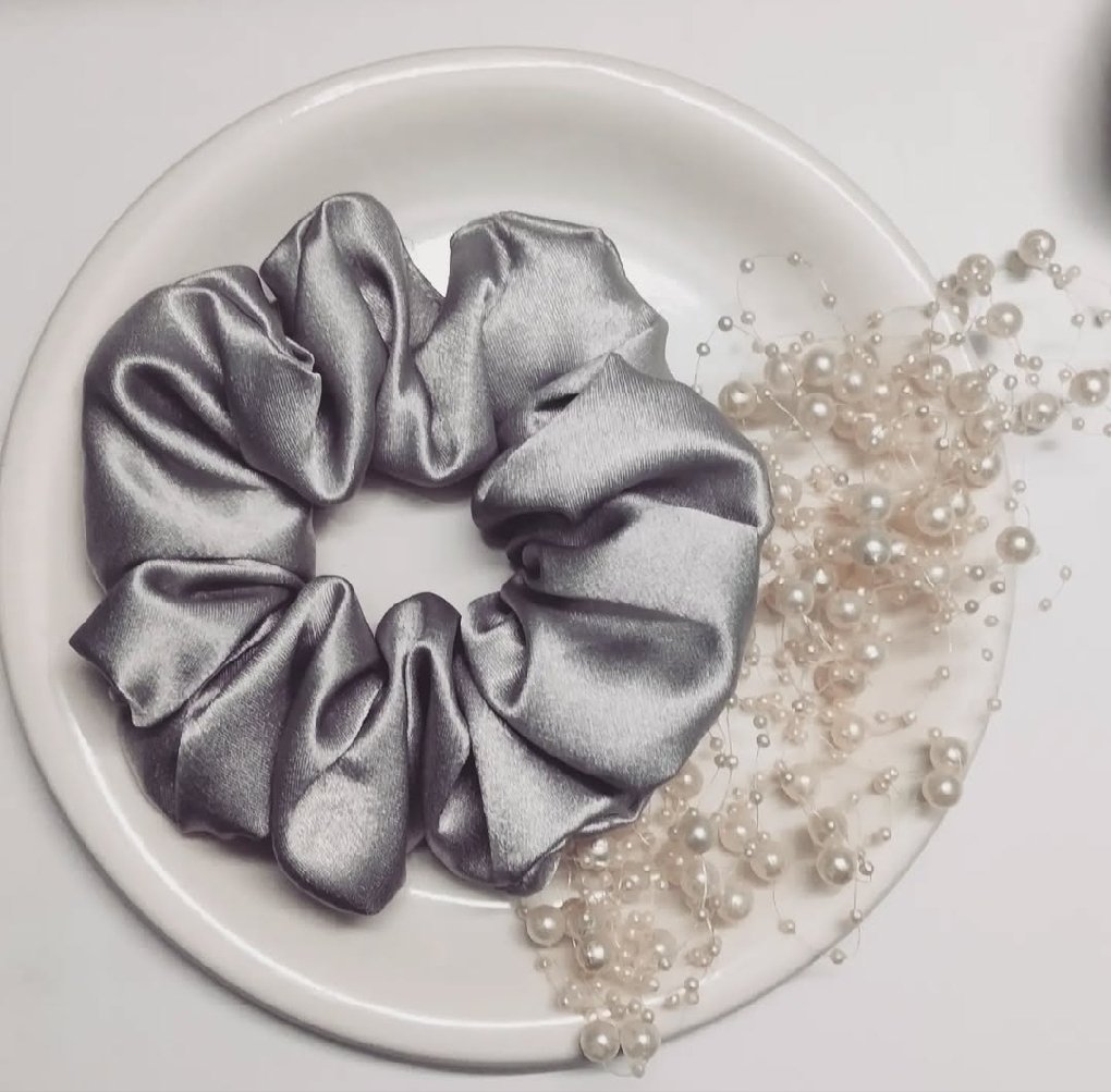 A grey satin scrunchie is the perfect blend of elegance and practicality, adding a touch of sophistication to any hairstyle. The smooth, lustrous texture of satin gives it a sleek and refined look while ensuring a secure yet gentle grip on the hair. The subtle grey color exudes sophistication, versatility, and timeless charm, making it a standout accessory for both casual and formal occasions. Whether worn in a high ponytail, a messy bun, or as a wrist accessory, this scrunchie enhances any look with effortless grace. Ideal for all hair types, it prevents breakage while keeping strands neatly in place, making it a must-have addition to any accessory collection.