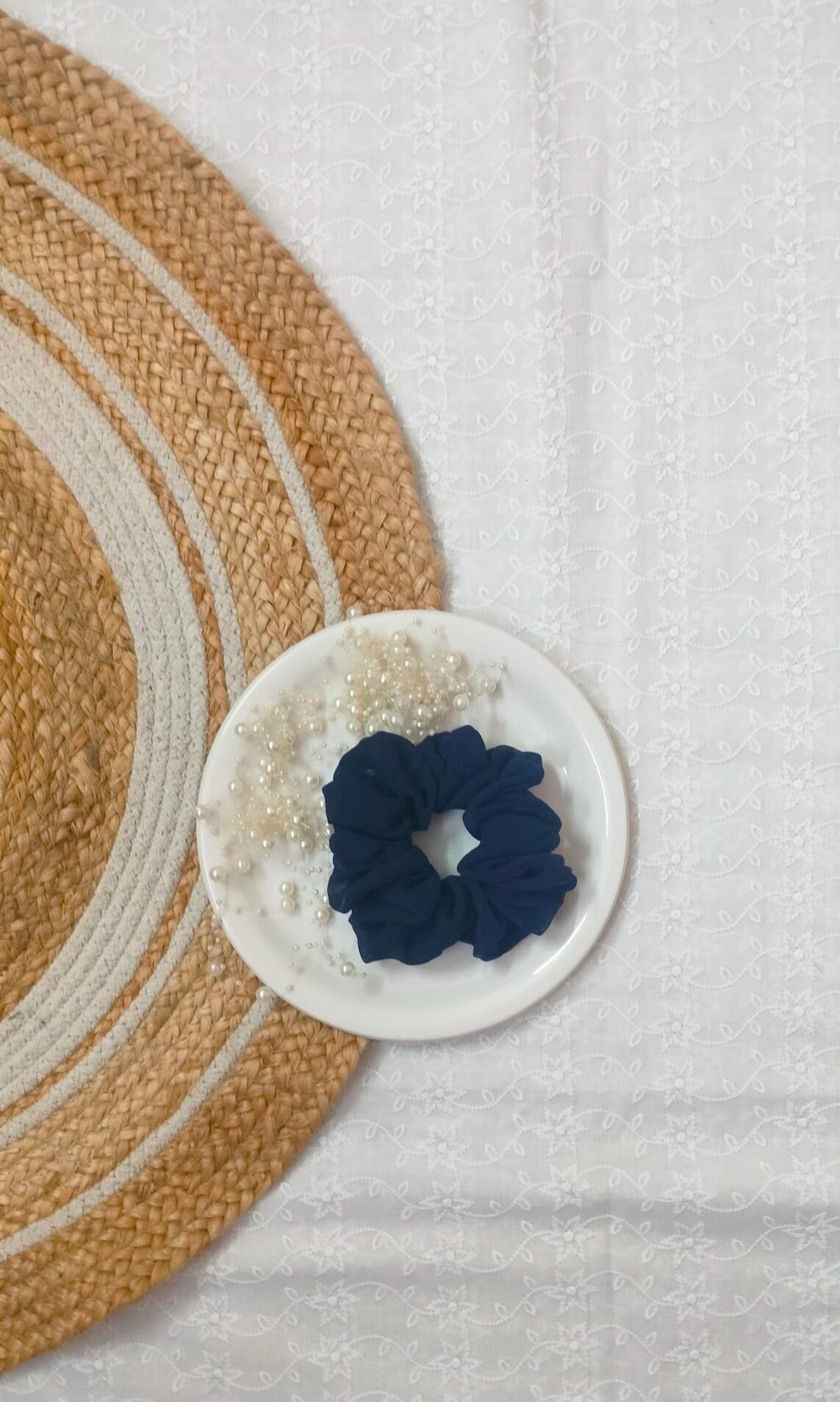 The Navy Blue Georgette Scrunchie blends style and comfort with its soft, lightweight fabric and secure hold. Its deep navy blue hue adds elegance, making it perfect for any hairstyle or occasion. Durable and stylish, it’s a must-have accessory.