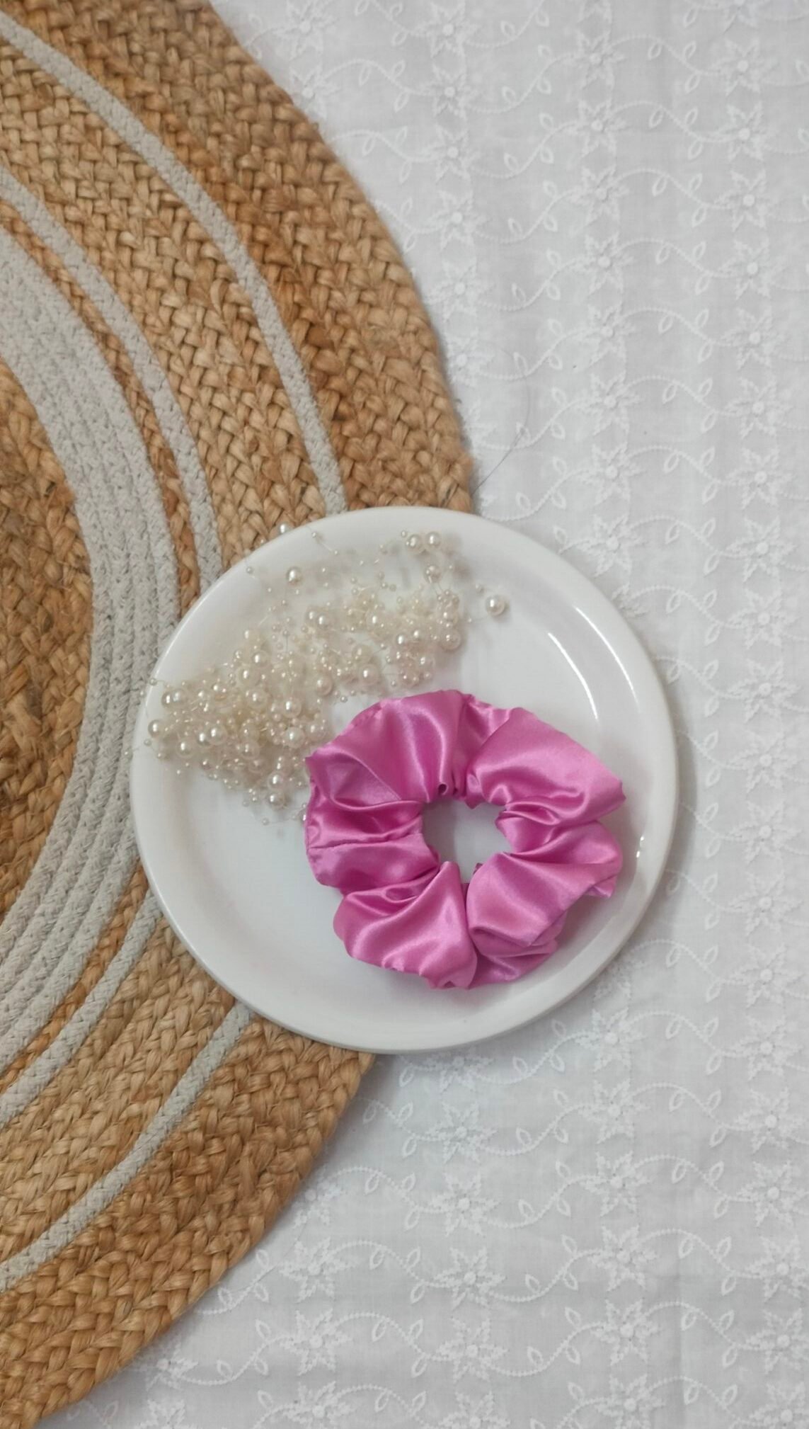 Be the first to review “Pink satin scrunchie”